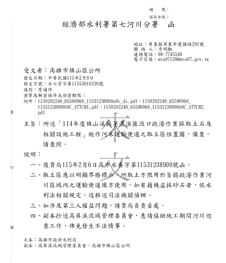 3.核定-1101221-水利署-111-114旗山溪月眉橋下游河段疏濬作業計畫