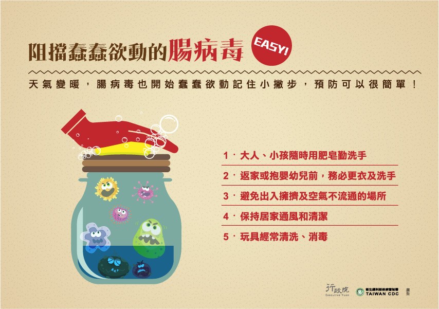 大人小孩要養成勤洗手的好習慣,回家後立刻更衣、洗手,避免出入空氣不流通的場所,並保持居家通風與清潔,玩具也要定期清洗消毒。
